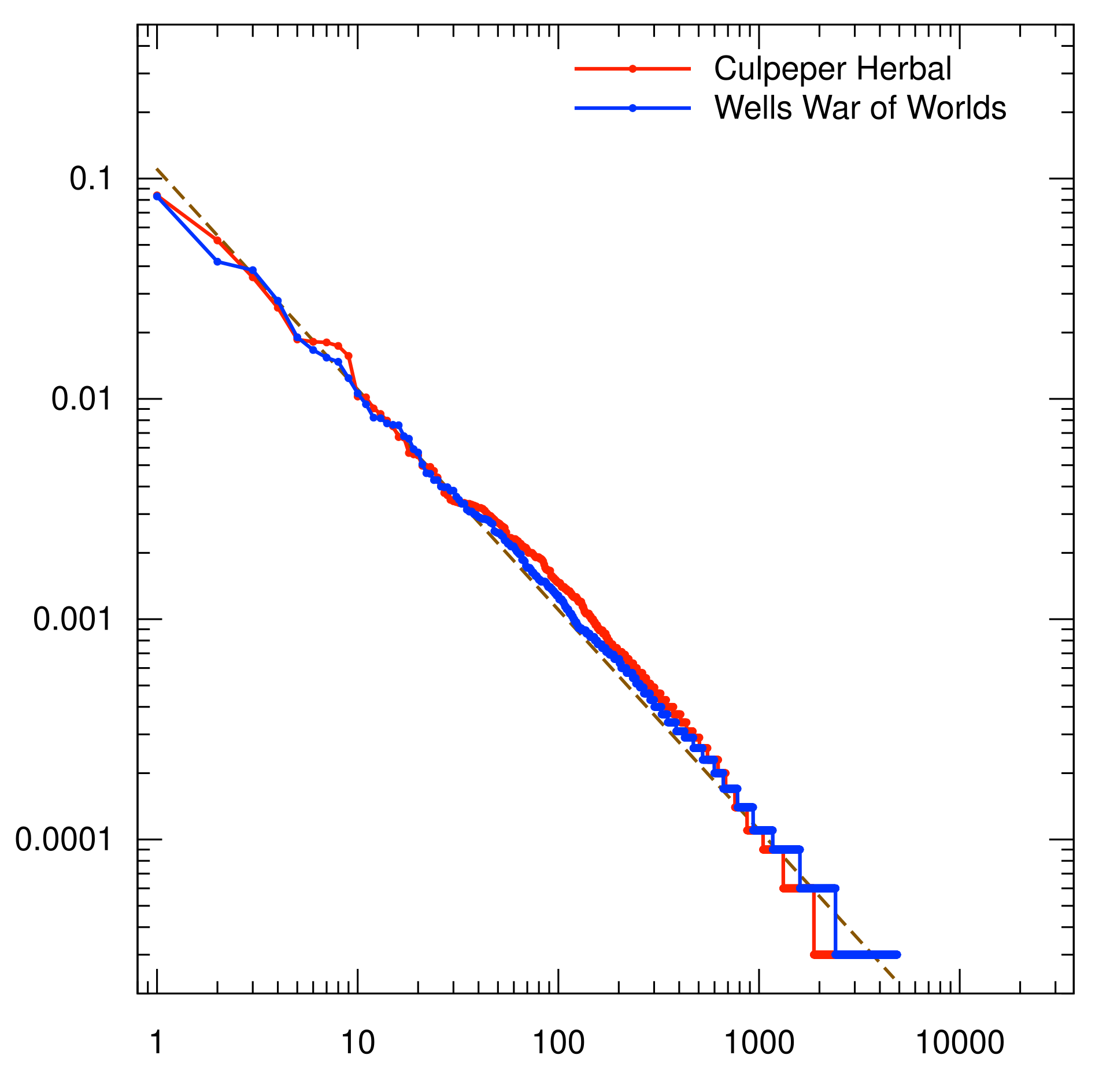 OK, thank you for bearing with a load of theory. Now let us see how well Zipf’s law actually performs. There are very many studies on this topic, and so we are only going to consider a few of them.