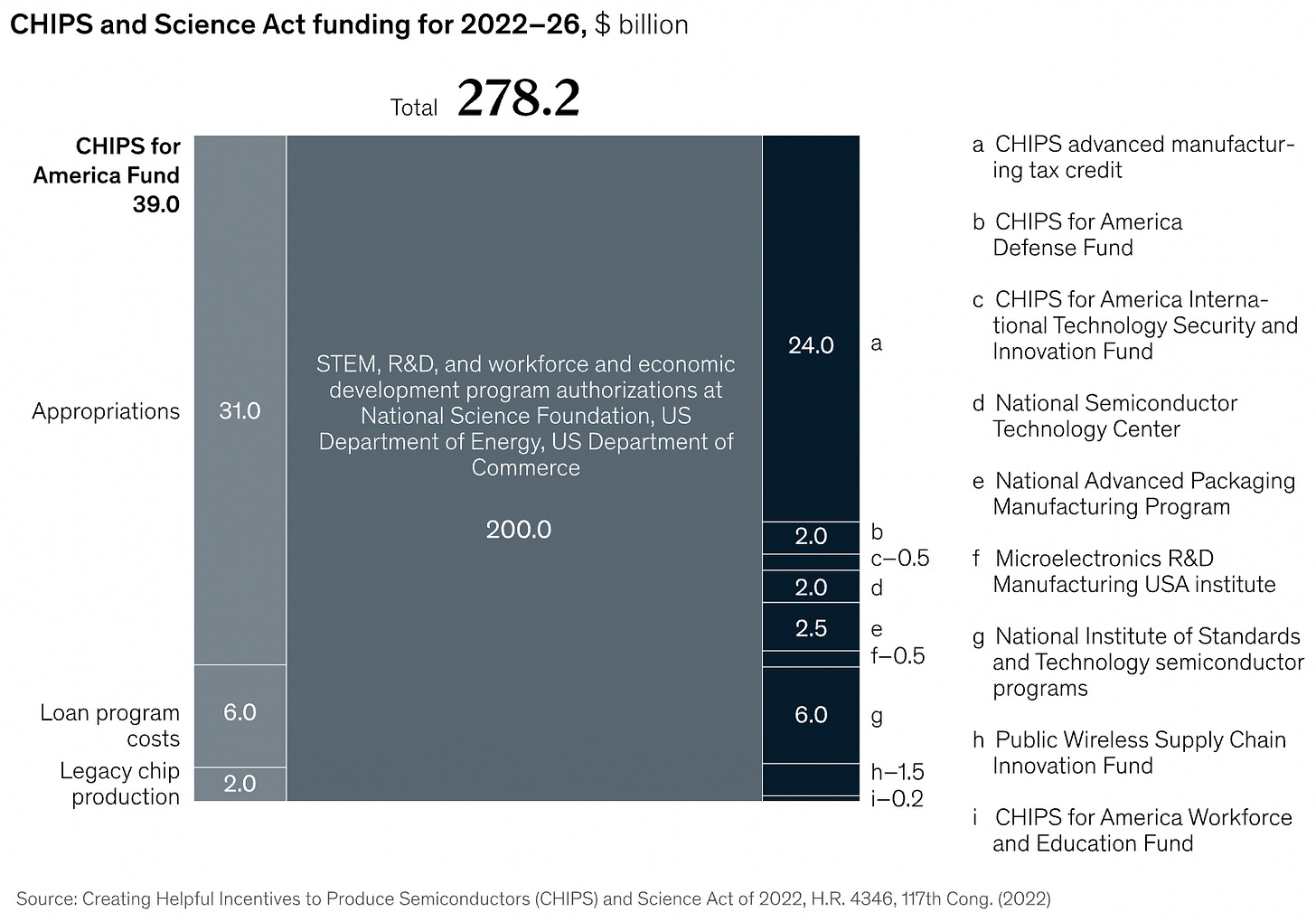 Reason has an article about last year’s CHIPS and Science Act (helpful summary here and more detailed summary here), which, given their libertarian orientation, can easily guessed to be negative. This bill appropriated $200 and some billion for subsidies for semiconductor manufacturing, R&D, and workforce development.